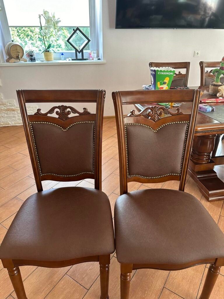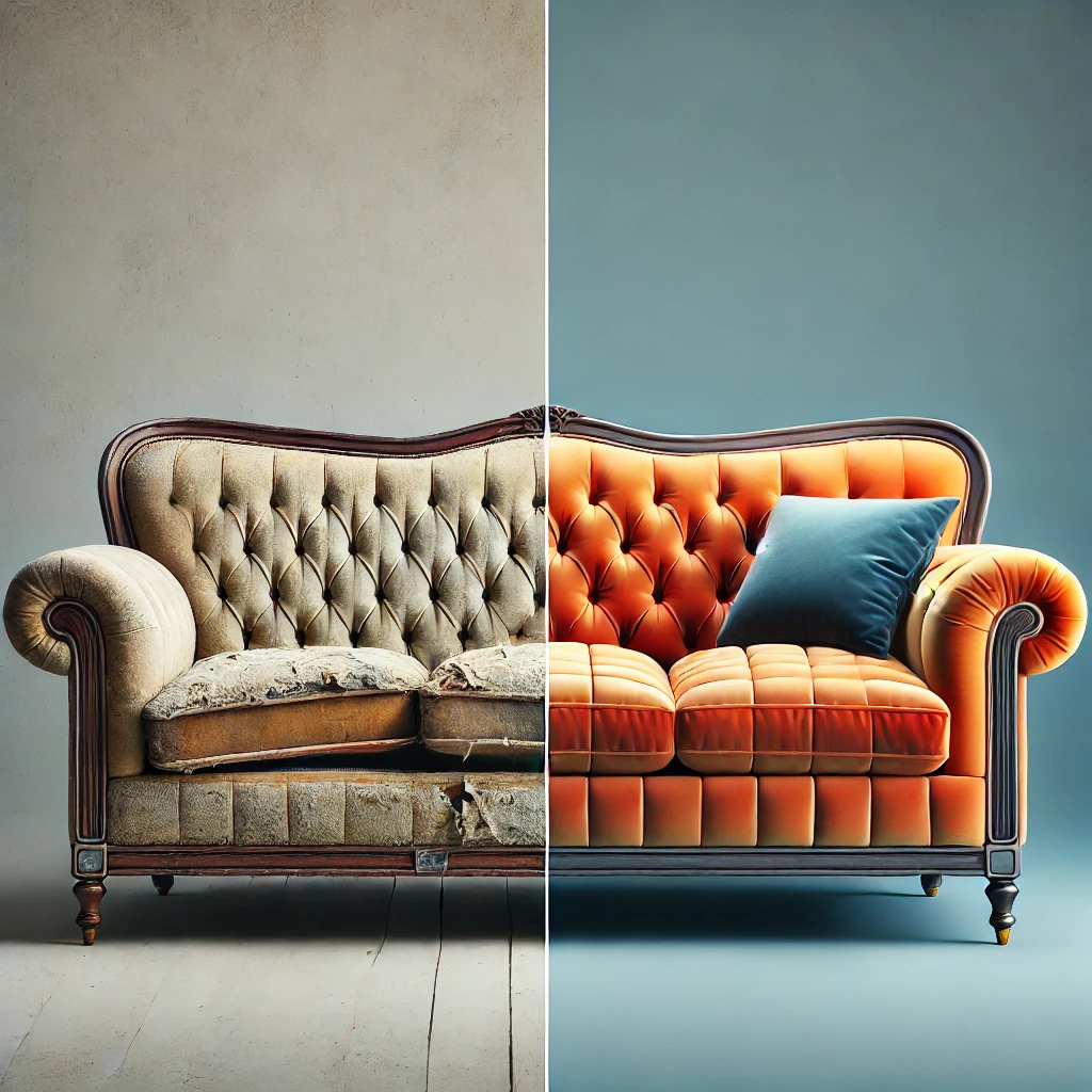 Atliktas pervilkimas aukštos kokybės gobelenu bei minkštos dalies keitimas naujomis medžiagomis.